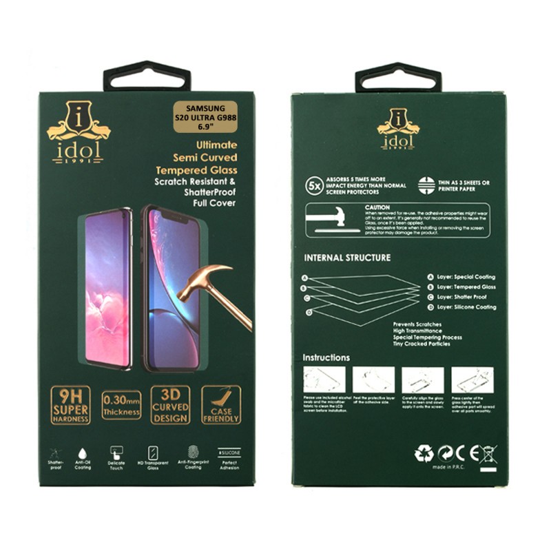 IDOL 1991 TEMPERED GLASS SAMSUNG S20 ULTRA G988 6.9" 9H 0.25mm 3D EDGE GLUE SEMI CURVED FINGER UNLOCK BLACK
