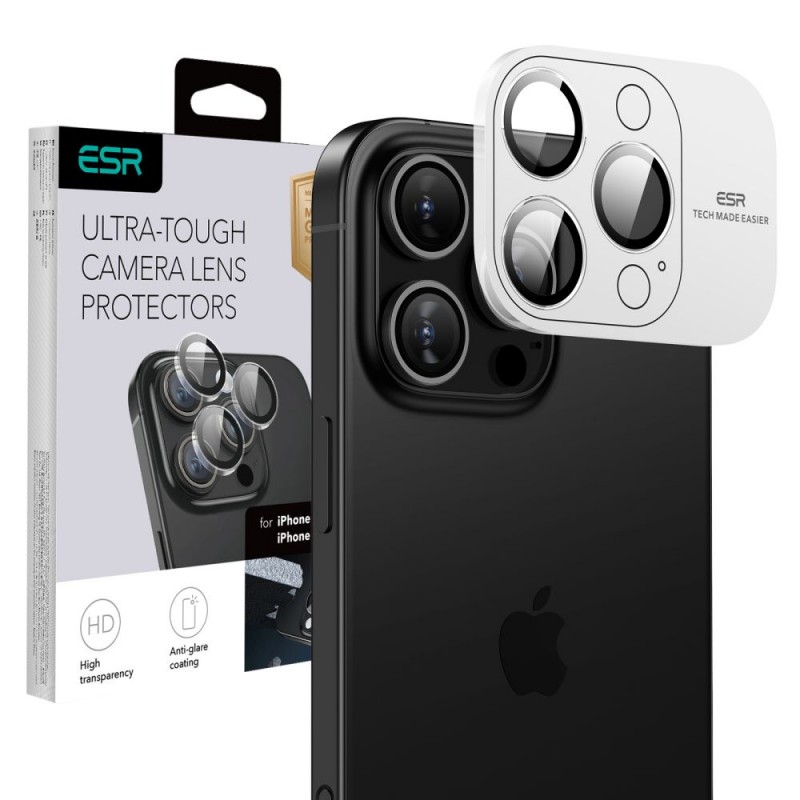 Αντιχαρακτικό γυαλί της ESR για την προστασία της πίσω κάμερας του κινητού από γρατζουνιές και φθορές. Δεν αλλοιώνει τις φωτογραφίες. Συμβατό με το iPhone 16 Pro / 16 Pro Max.