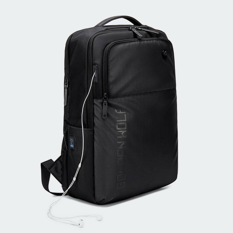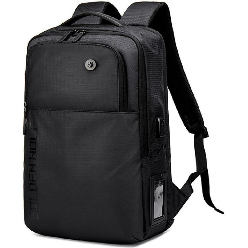 GOLDEN WOLF τσάντα πλάτης GB00399, με θήκη laptop 15.6", 20L, μαύρη