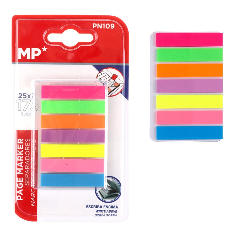 MP αυτοκόλλητοι σελιδοδείκτες PN109, ημιδιάφανοι, 45 x 9mm, 7x 25 τμχ