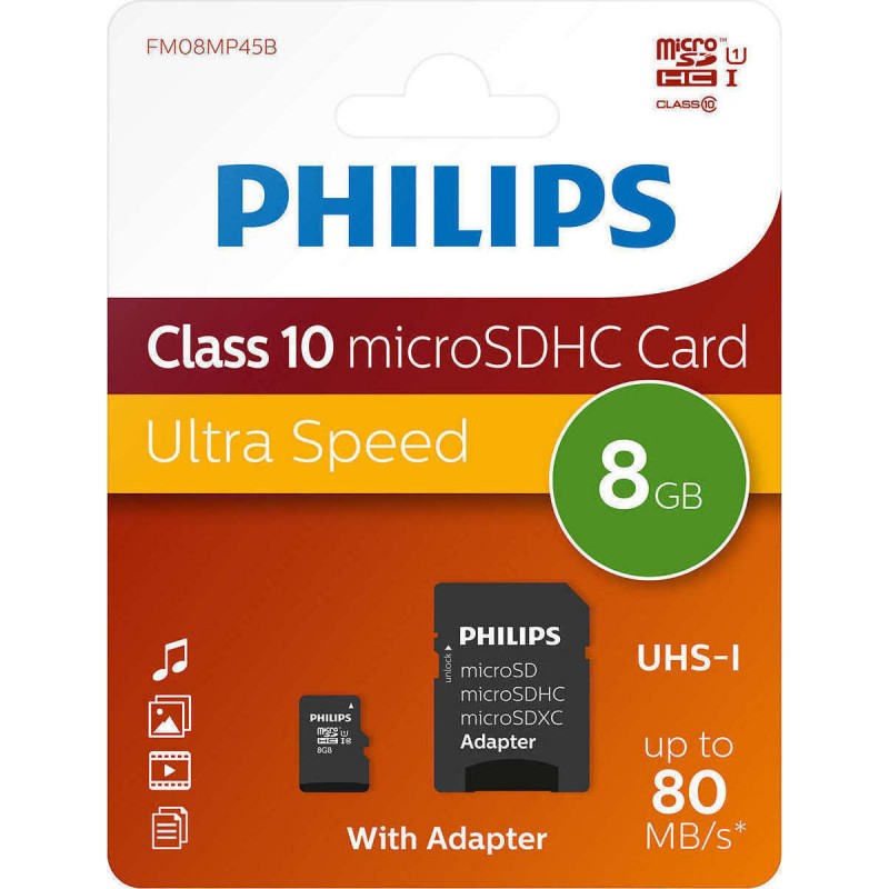 Philips microSDHC 8GB Class 10 UHS-I με Adapter (FM08MP45B/00)