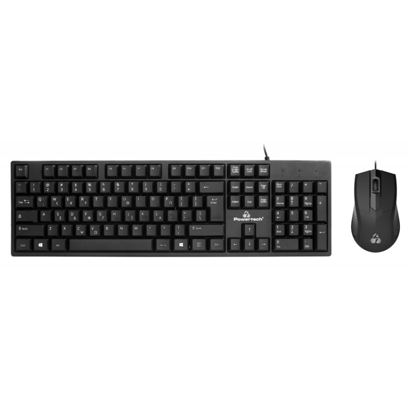 POWERTECH set ποντίκι & πληκτρολόγιο PT-1075, ενσύρματο, 1000dpi, μαύρο
