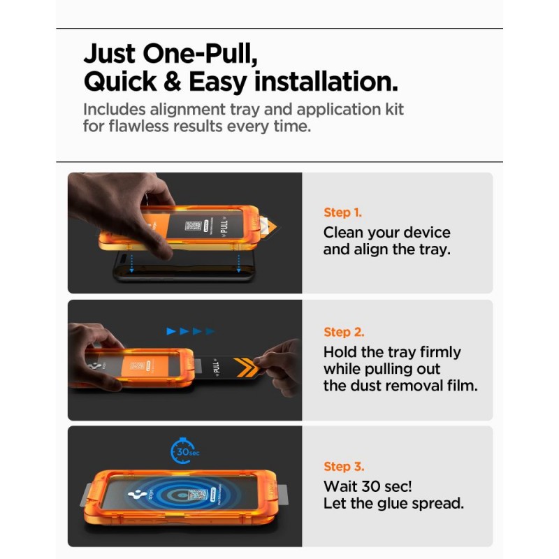 Το Spigen Glas.tR AlignMaster S Tempered Glass για iPhone 17 Pro προσφέρει κορυφαία προστασία στην οθόνη της συσκευής σας χωρίς να θυσιάζει τη διαφάνεια ή την ευαισθησία αφής. Το σετ περιλαμβάνει τρία γυαλιά από υψηλής αντοχής High-Alumina Silicate με σκληρότητα 9H, παρέχοντας ανθεκτικότητα απέναντι σε γρατζουνιές και μικροχτυπήματα. Η oleophobic επίστρωση περιορίζει τα δακτυλικά αποτυπώματα και τους ρύπους, ενώ το σύστημα AlignMaster εξασφαλίζει εύκολη και ακριβή εγκατάσταση χωρίς φυσαλίδες. Με πολλαπλά στρώματα για μέγιστη προστασία και απόλυτα διαυγή εικόνα, το συγκεκριμένο προϊόν διατηρεί την ποιότητα και τη λειτουργικότητα της οθόνης του iPhone σας.