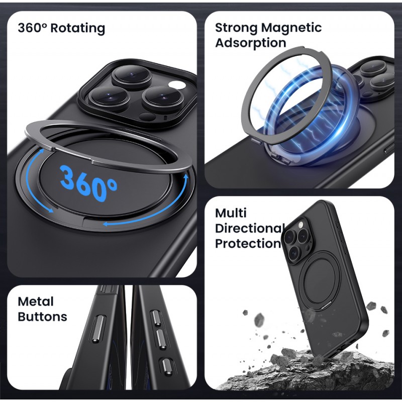 Διαθέτει δακτύλιο για χρήση ως σταντ και ενσωματώνει ισχυρό μαγνήτη που επιτρέπει την απόλυτη προσαρμογή του smartphone σας σε έναν MagSafe ασύρματο φορτιστή ή μια μαγνητική βάση.