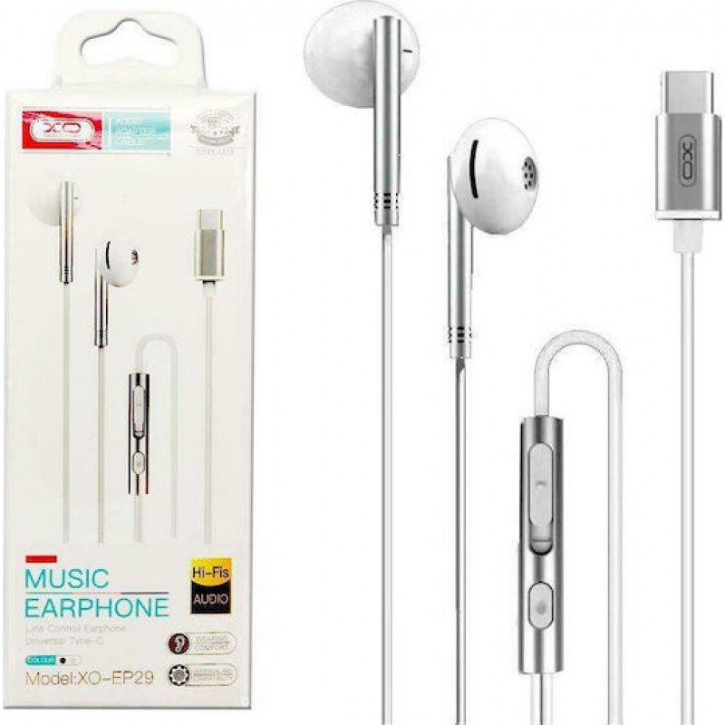 XO EP29 Ενσύρματα Ακουστικά με USB-C και Μικρόφωνο Ασημί